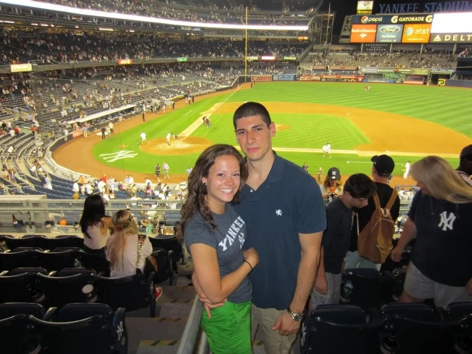 One of Katie and Mike's many differences is their allegiance to rival baseball teams. Katie is a true Yankees fan, she sheds a few tears when saying goodbye to the players at the end of every season. Mike is a true Red Sox fan, he sheds a few tears when they're in last place half way through the season. This spirited rivalry has led them to bet on every game, whether it's for chores or massages, and brought a new level of excitement to a game they both love.